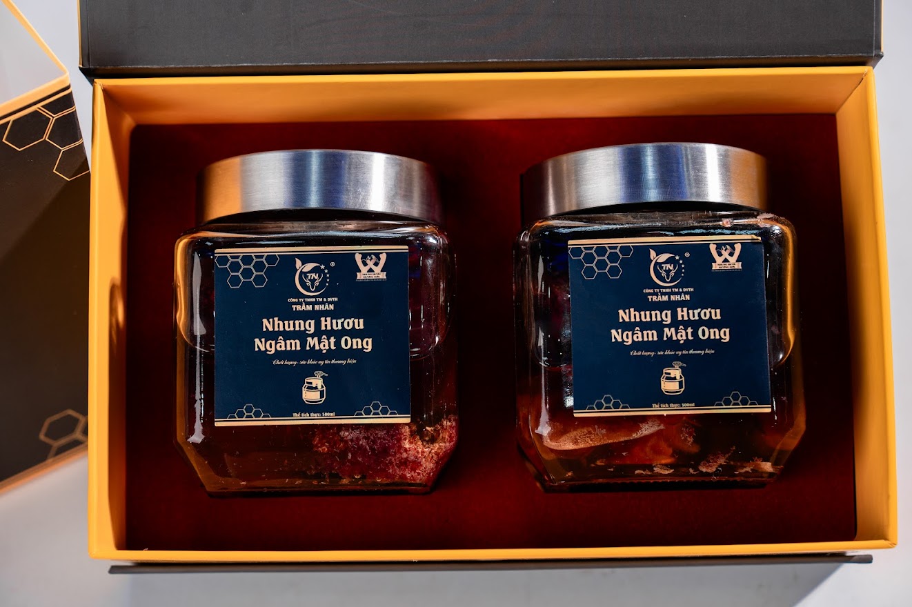 Công ty luôn đa dạng sản phẩm phục vụ cho nhu cầu của khách hàng, như nhung Hươu cắt tươi trực tiếp, hay ngâm mật ong, ngâm rượu, Cao nhung hươu, viên nhung cô khô nhung hươu, thái lát nhung tươi ngâm mật ong với rượu nếp trắng v v . Ảnh: Thanh Huyền
